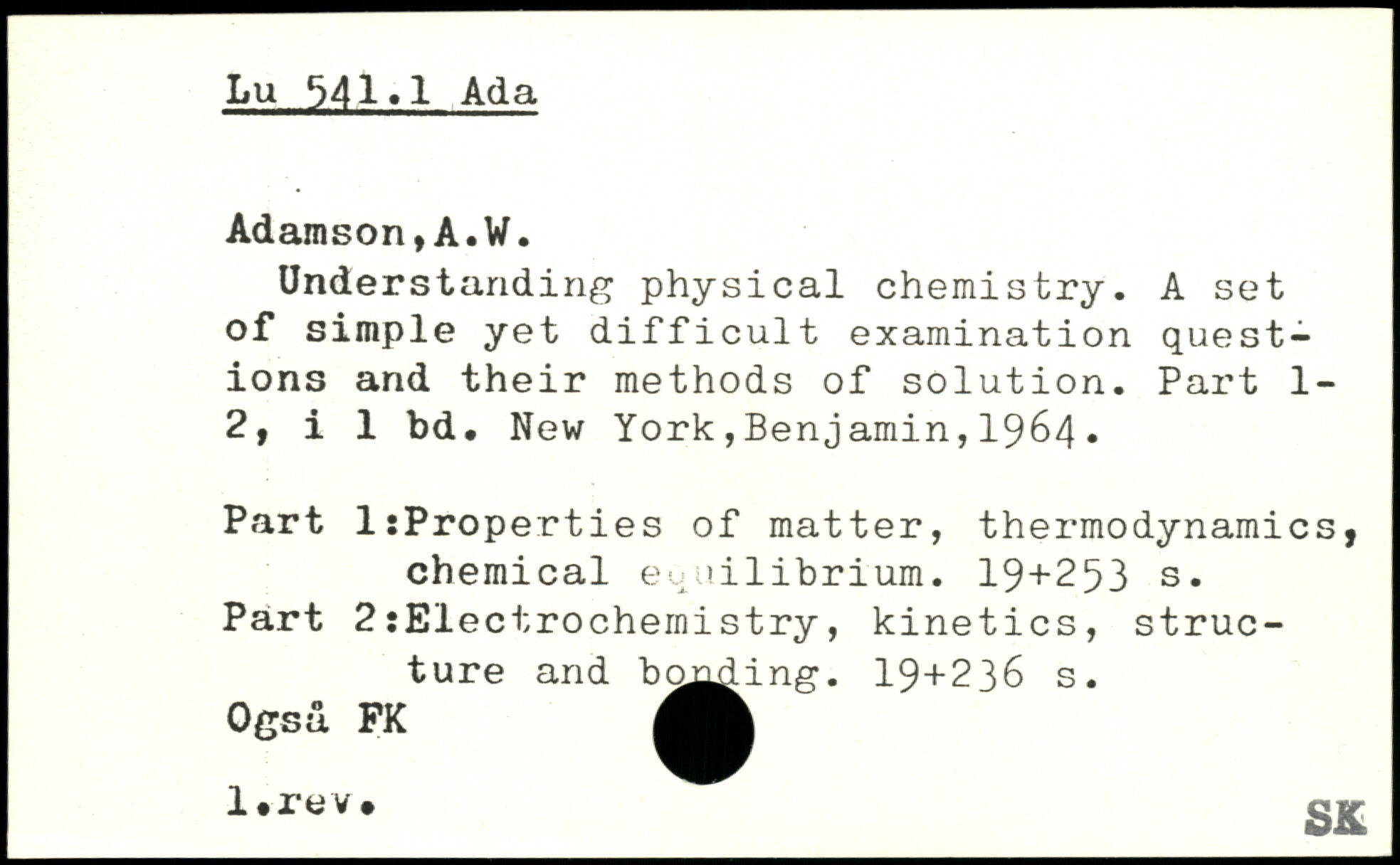 Understanding physical chemistry. A set of simple yet difficult examination questions and their methods of solution. Part 1-2, i 1 bd.