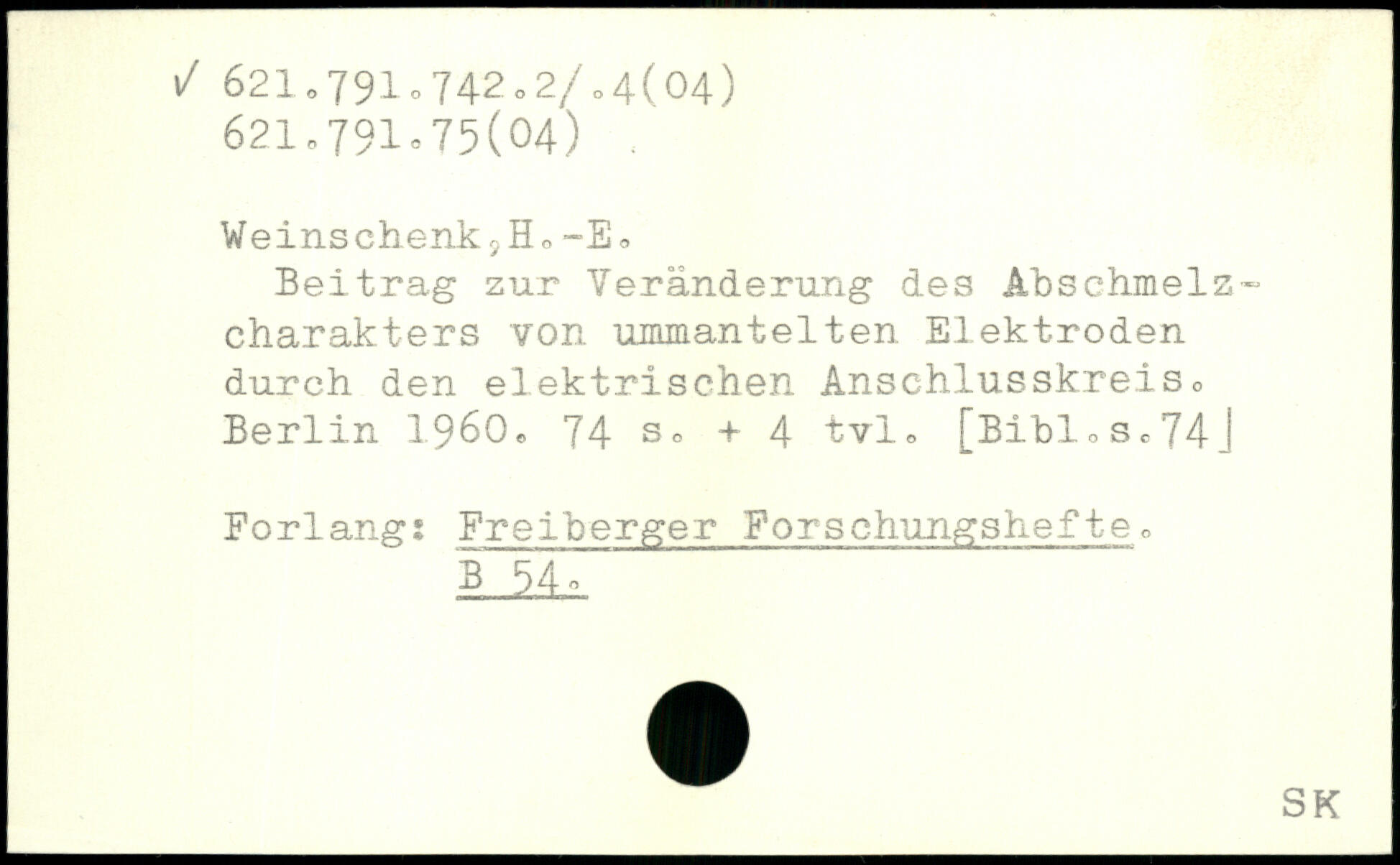 Weinschenk SH,-E, Beitrag zur Veränderung des Abschmelz-Charakters von ummantelten Elektroden durch den elektrischen Anschlusskreis.