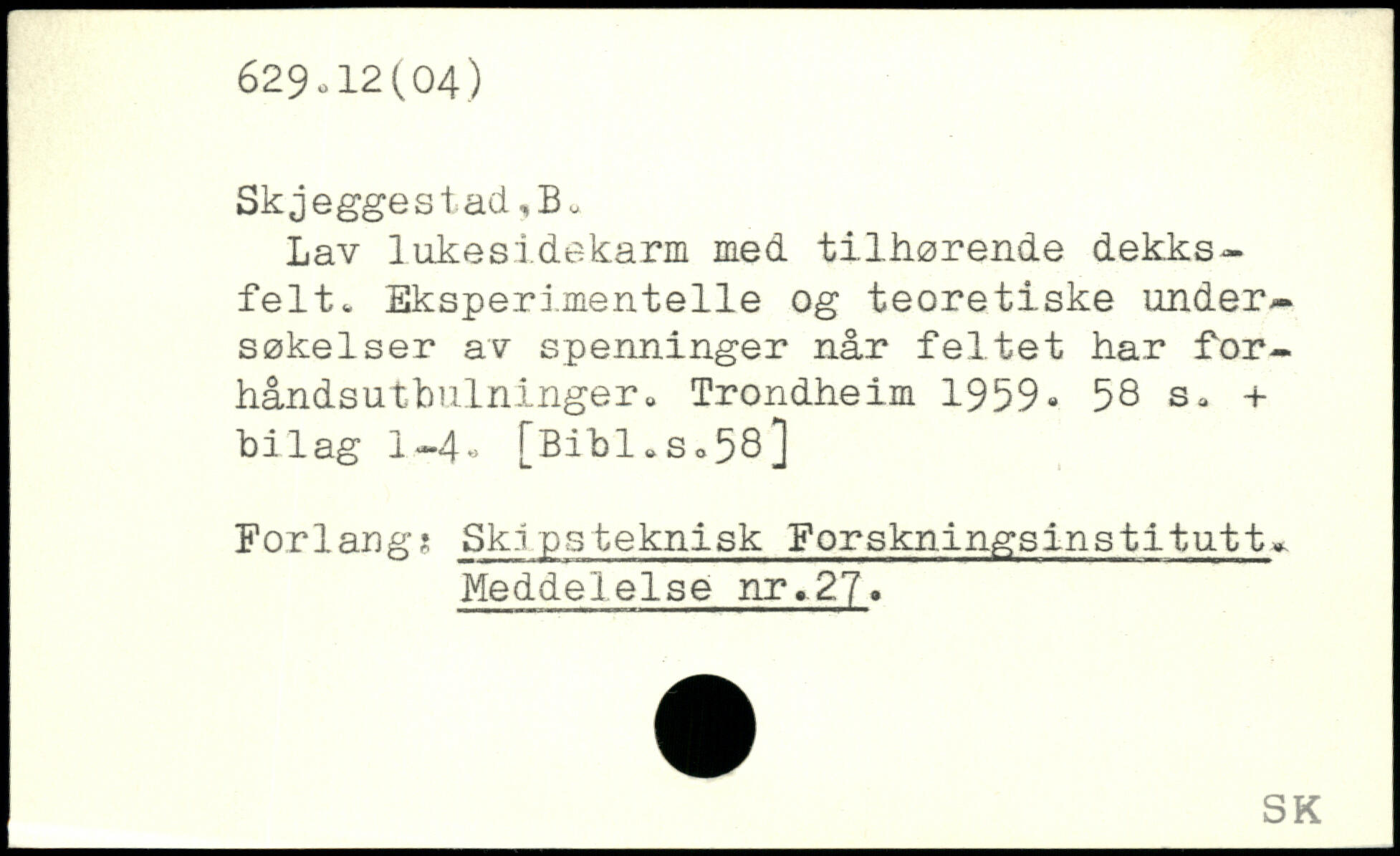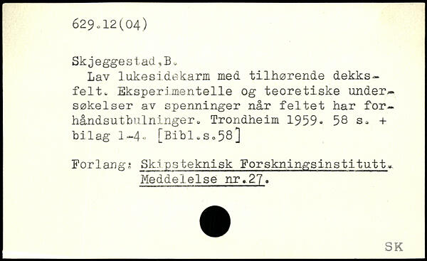 Lav lukesidekarm med tilhørende dekks-felt. Eksperimentelle og teoretiske undersøkeiser av spenninger når feltet har for-håndsutbulninger