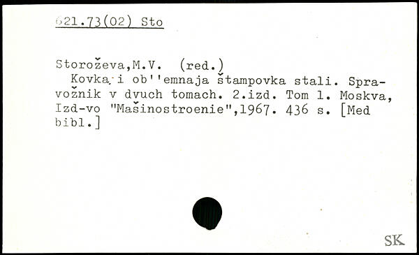 Kovka/i ob'’emnaja stampovka stali. Spra-voznik v dvuch tomach. 2,izd. Tom 1. Moskva, Izd-vo "Masinostroenie",1967.