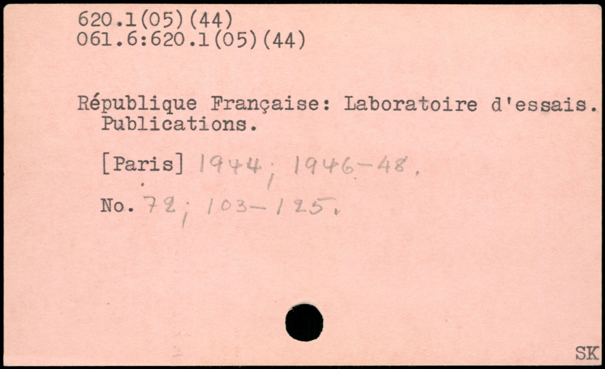République Française: Laboratoire d'essais. Publications.