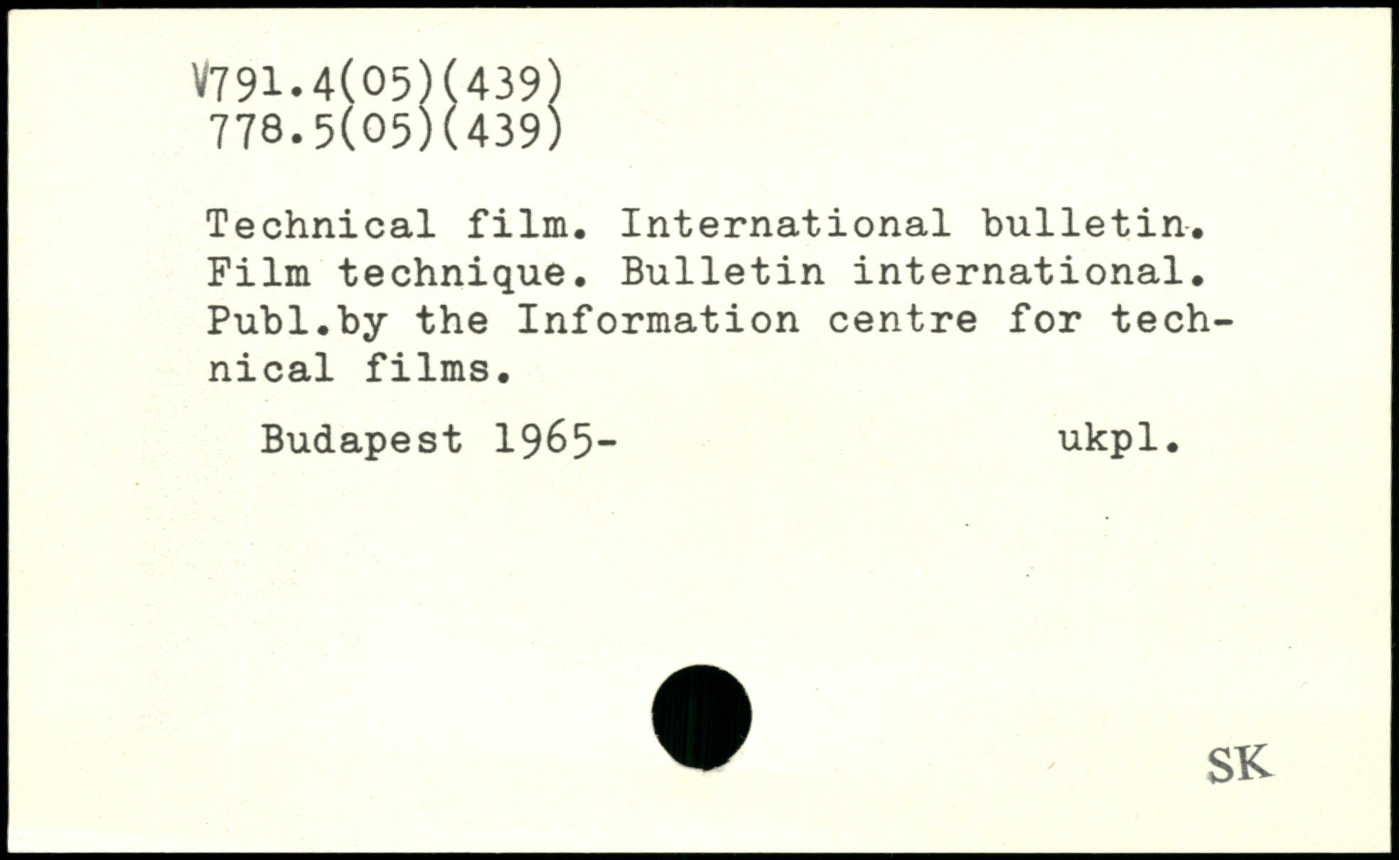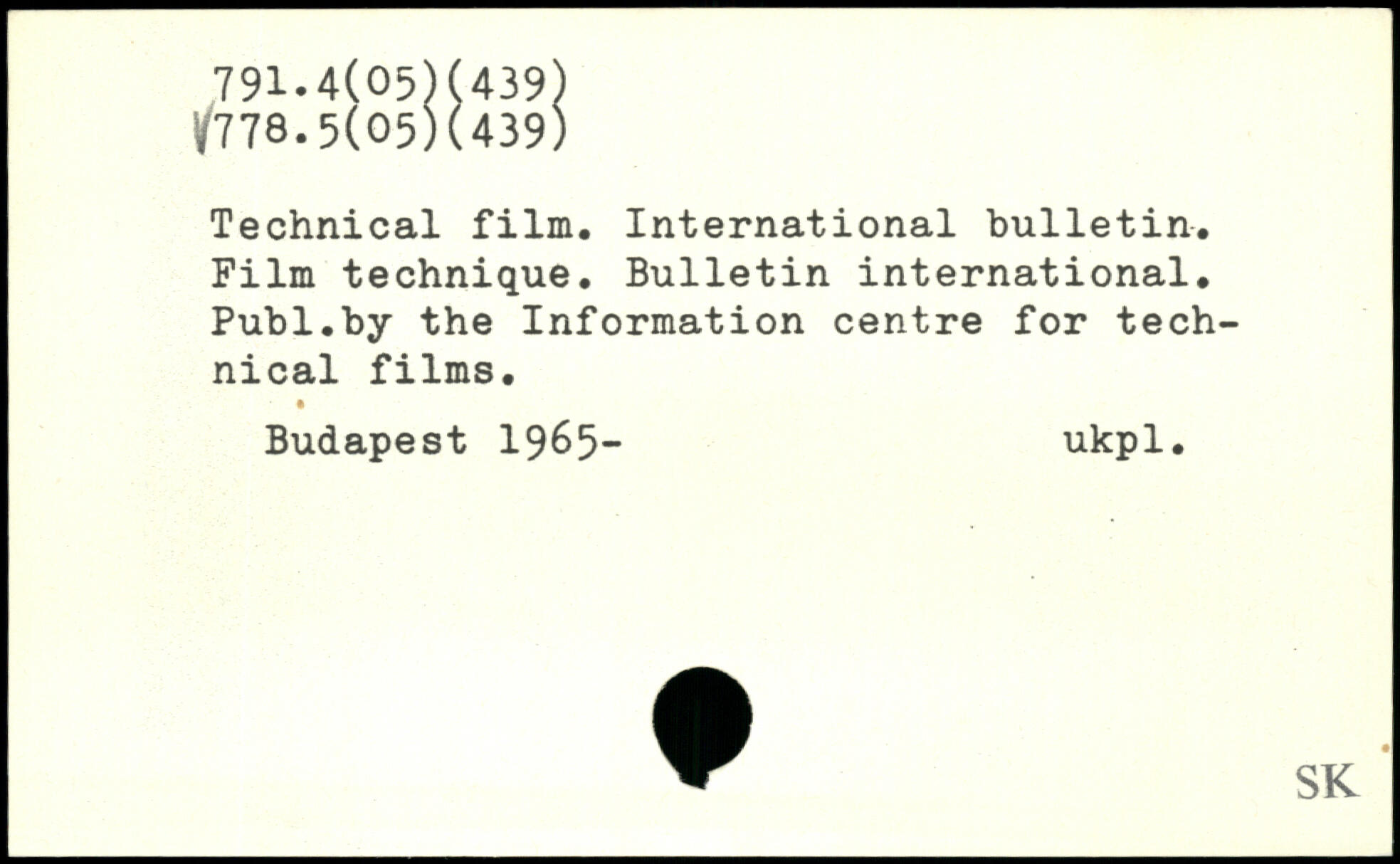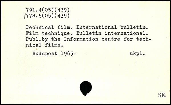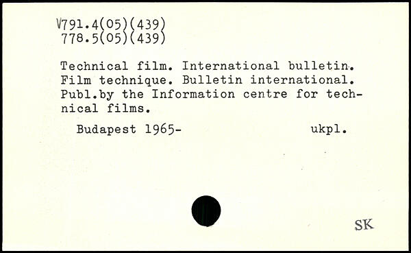 Technical film. International bulletin. Film technique. Bulletin international.