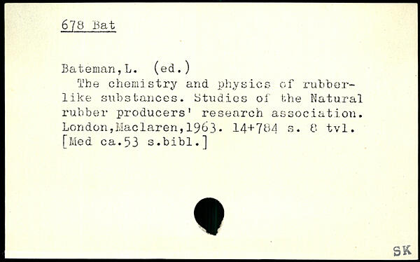 The chemistry and physics of rubber-like substances. Studies of the Natural rubber producers' research association.