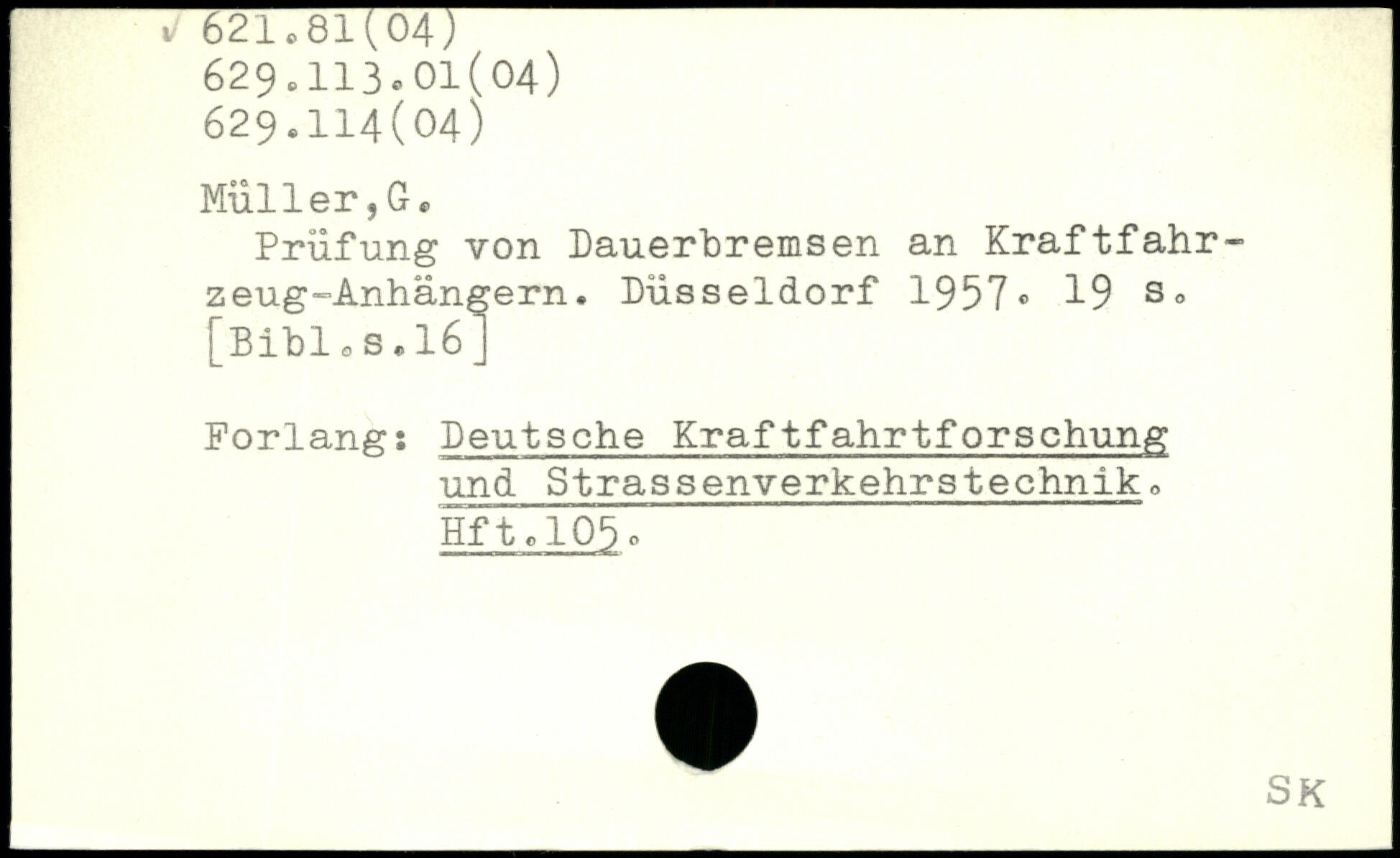 Prüfung von Dauerbremsen an Kraftfahrzeug-Anhängern. Düsseldorf 1957®