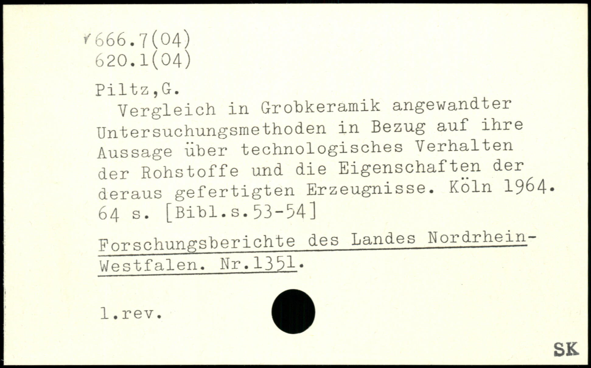 Vergleich in Grobkeramik angewandter Untersuchungsmethoden in Bezug auf ihre Aussage über technologisches Verhalten der Rohstoffe und die Eigenschaften der deraus gefertigten Erzeugnisse.