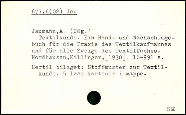 Textilkunde o Ein Hand- und Nachschlage-buch für die Praxis des Textilkaufmannes und für alle Zweige des Textilfaches. Nordhausen,K1111nger, [l93ö] ,