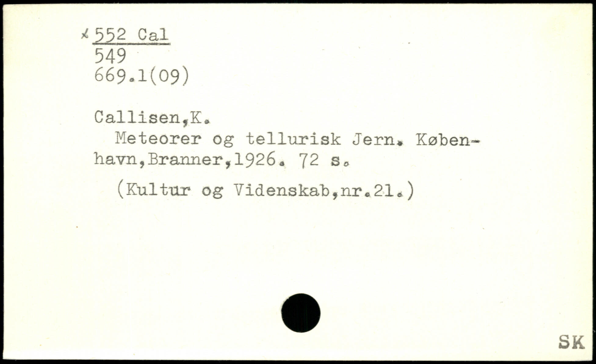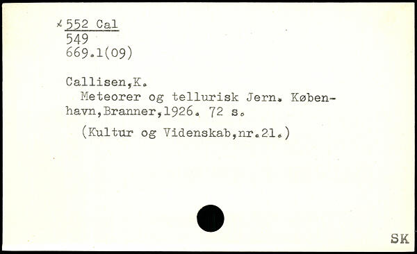 Meteorer og tellurisk Jern. København, Branner, 1 92 6.