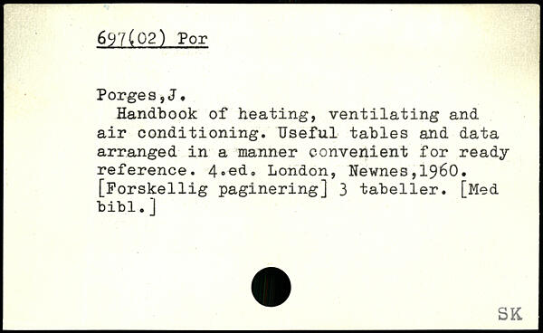 Handbook of heating, ventilating and air conditioning. Useful tables and data arranged in a manner convenient for ready : reference.