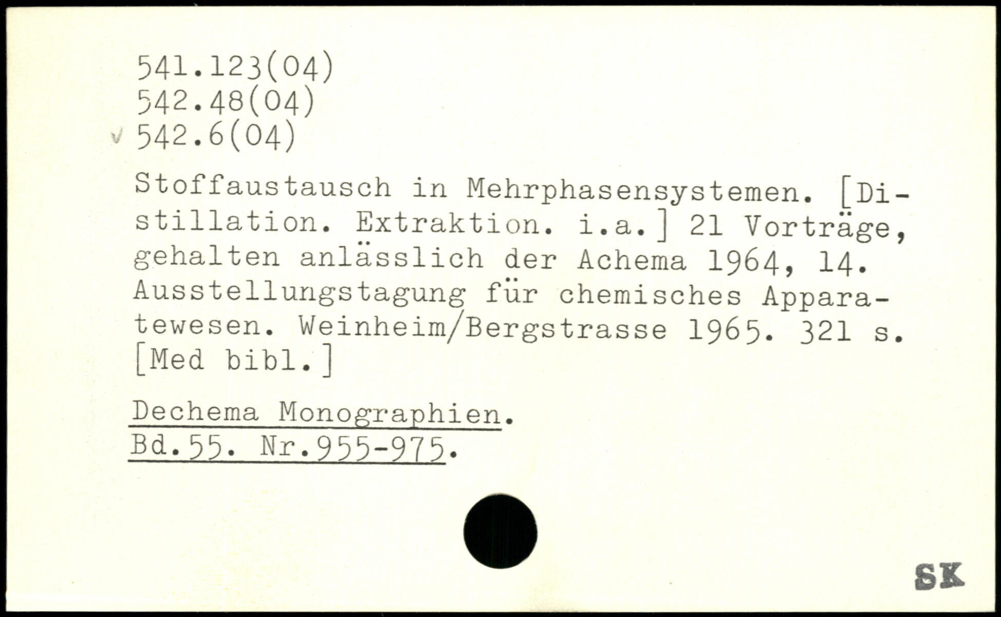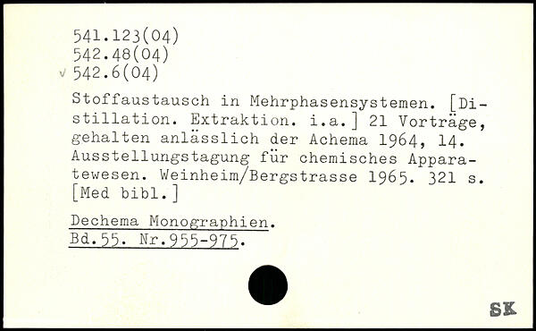 Stoffaustausch in Mehrphasensystemen. [Di-stillation. Extraktion, i.a.] 21 Vortrage, | gehalten anlässlich der Acheraa 1964, 14. Ausstellungstagung für chemisches Apparatewesen. Weinheim/Bergstrasse 1965.
