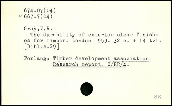 Gray,V0Rc The durability of exterior clear finishes for timber.