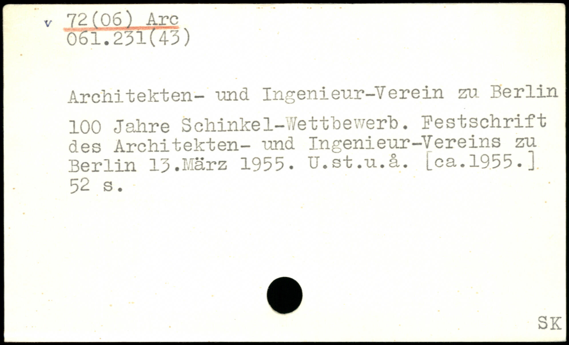 Architekten- und Ingenieur-Verein zu Berlin 100 Jahre Schinkel-Wettbewerb. Bestschrift des Architekten- und Ingenieur-Vereins zu Berlin 13.März 1955. U.st.u.ä. [ca.1955.J