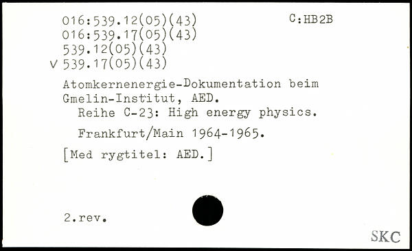 Atomkernenergie-Dokumentation beim Gmelin-Inst'itut, AED. Reihe C— 23: High energy physics. Frankfurt/Main 1 964-'1965,
