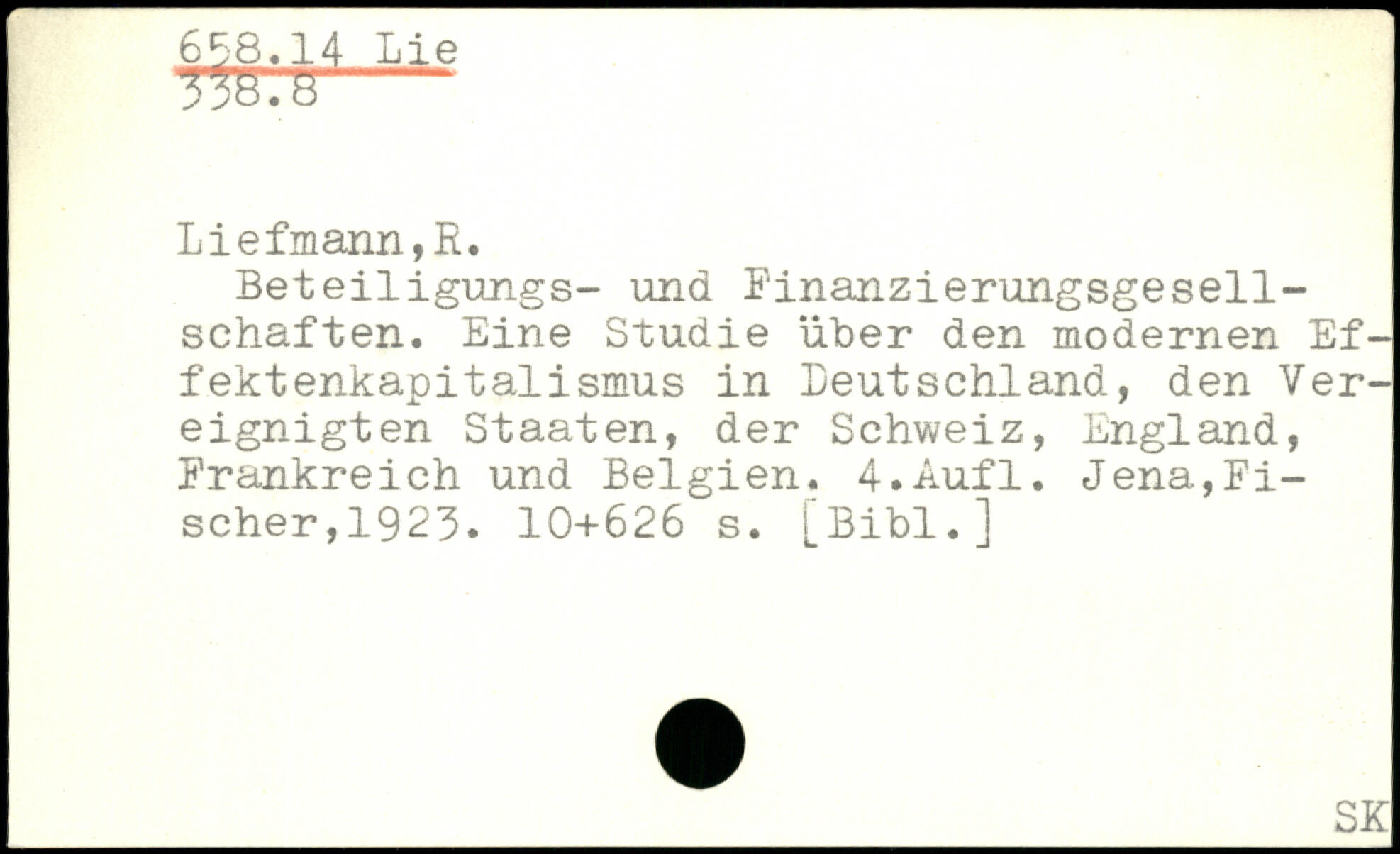 Beteiligungs- und Finanzierungsgesellschaften. Eine Studie über den modernen Effekt enkapitalismus in Deutschland, den Ver-eignigten Staaten, der Schweiz, England, Frankreich und Belgien.