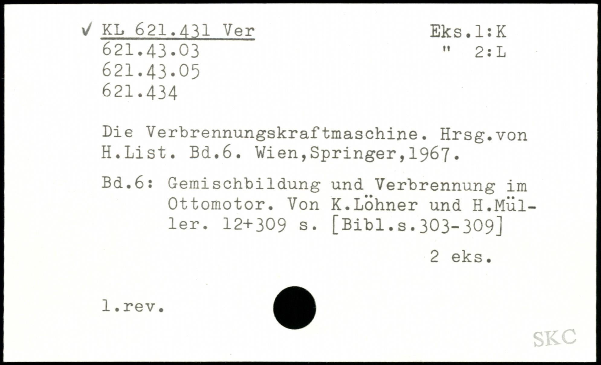 Die Verbrennungskraftmaschine. Hrsg.von H.List.