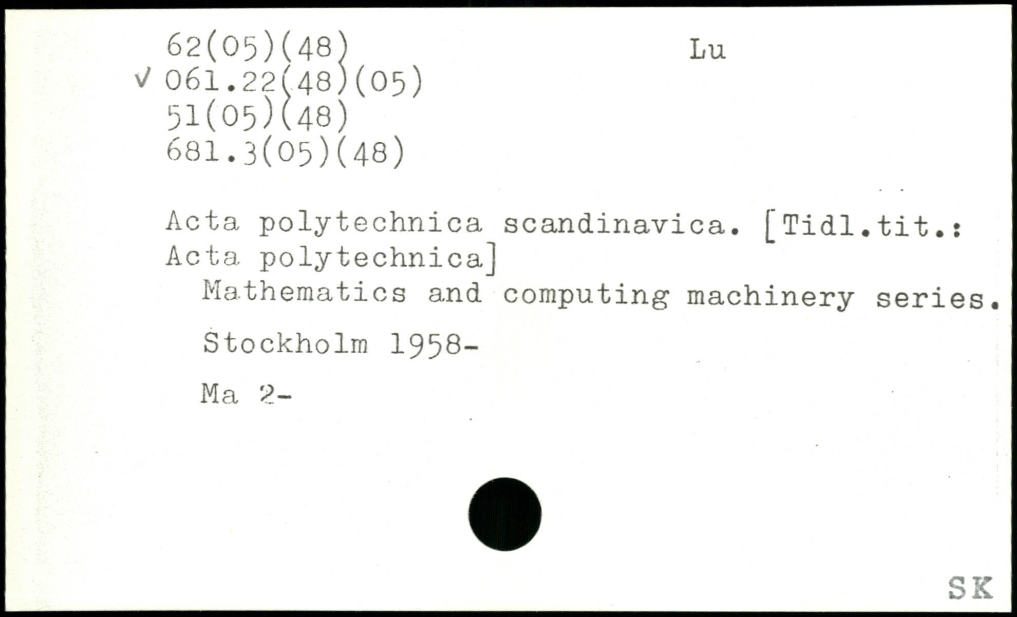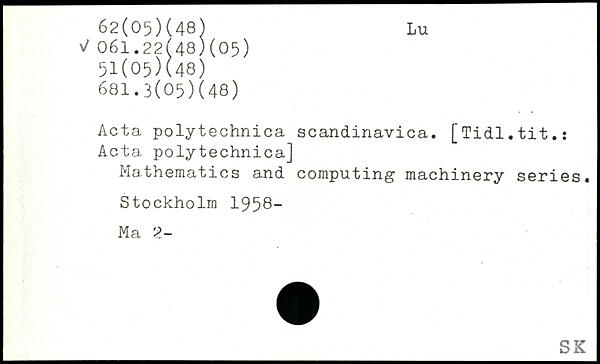 Acta polytechnica scandinavica. [Tidl.tit.: Acta polytechnica] Mathematics and computing machinery series.