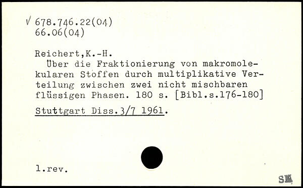 Uber die Fraktionierung von makromolekularen Stoffen durch multiplikative Verteilung zwischen zwei nicht mischbaren flüssigen Phasen.
