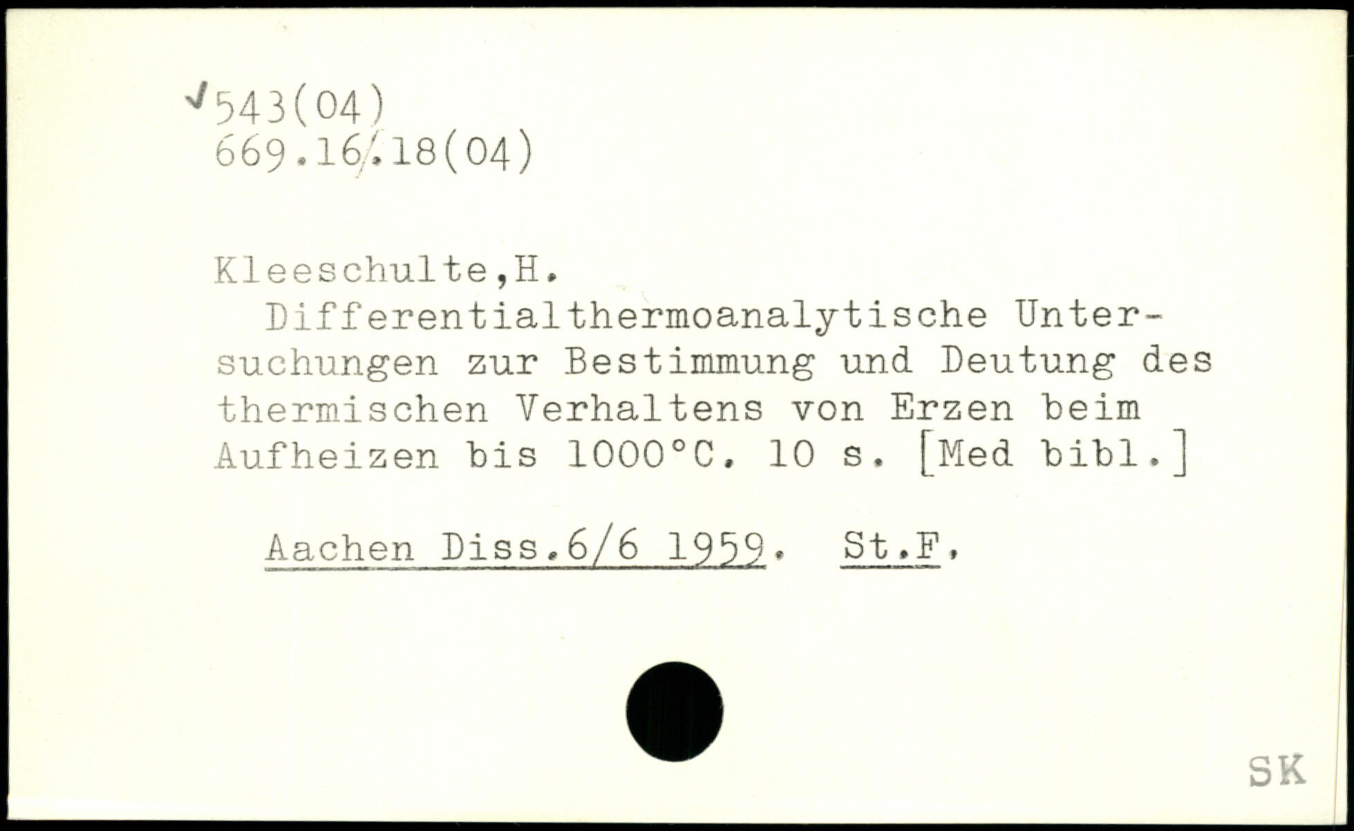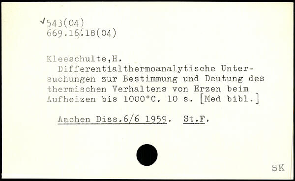 Differentialthermoanalytische Untersuchungen zur Bestimmung und Deutung des thermischen Verhaltens von Erzen heim Aufheizen bis 1000.C