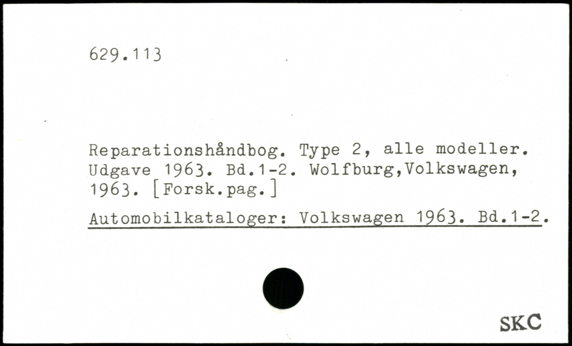 Reparationshåndbog. Type 2, alle modeller. Udgave 1963.