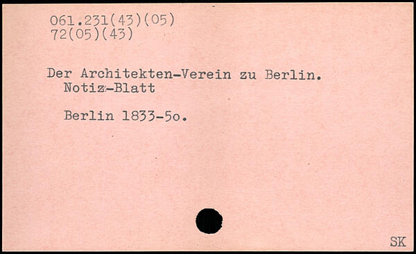 Der Architekten-Verein zu Berlin, Notiz;-Blatt