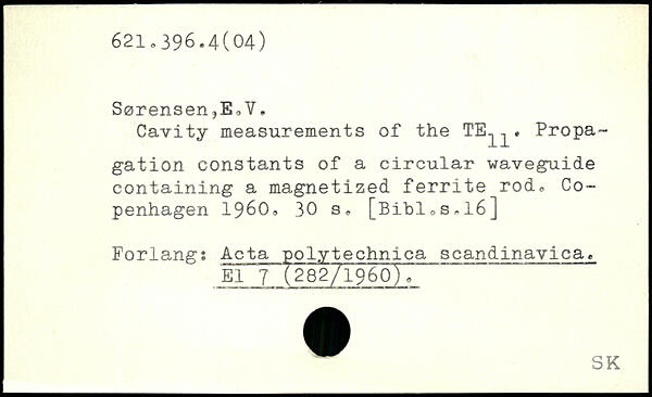 Cavity measurements of the TE^. Propa- gation constants of a circular waveguide containing a magnetized ferrite rod