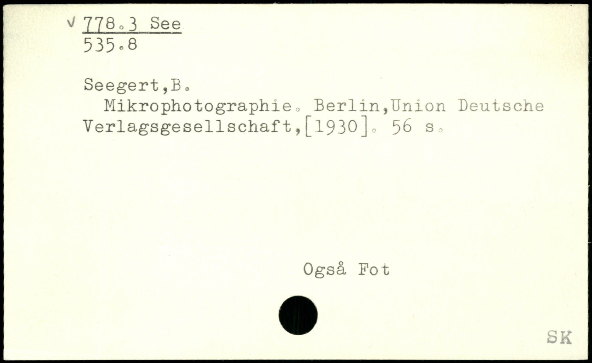 Mikrophotographie o Berlin,Union Deutsche Verlagsgesellschaft,[1930]o 56 So Også Fot