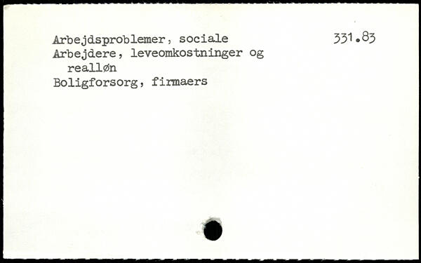 Arbejdsproblemer, sociale 33'5 .83 Arbejdere, leveomkostninger og realløn Boligforsorg, firmaers