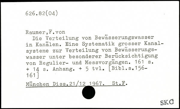 Die Verteilung von Bewässerungswasser in Kanälen. Eine Systematik grosser Kanalsysteme zur Verteilung von Bewässerungswasser unter besonderer Berücksichtigung von Regulier- und Messvorgängen.