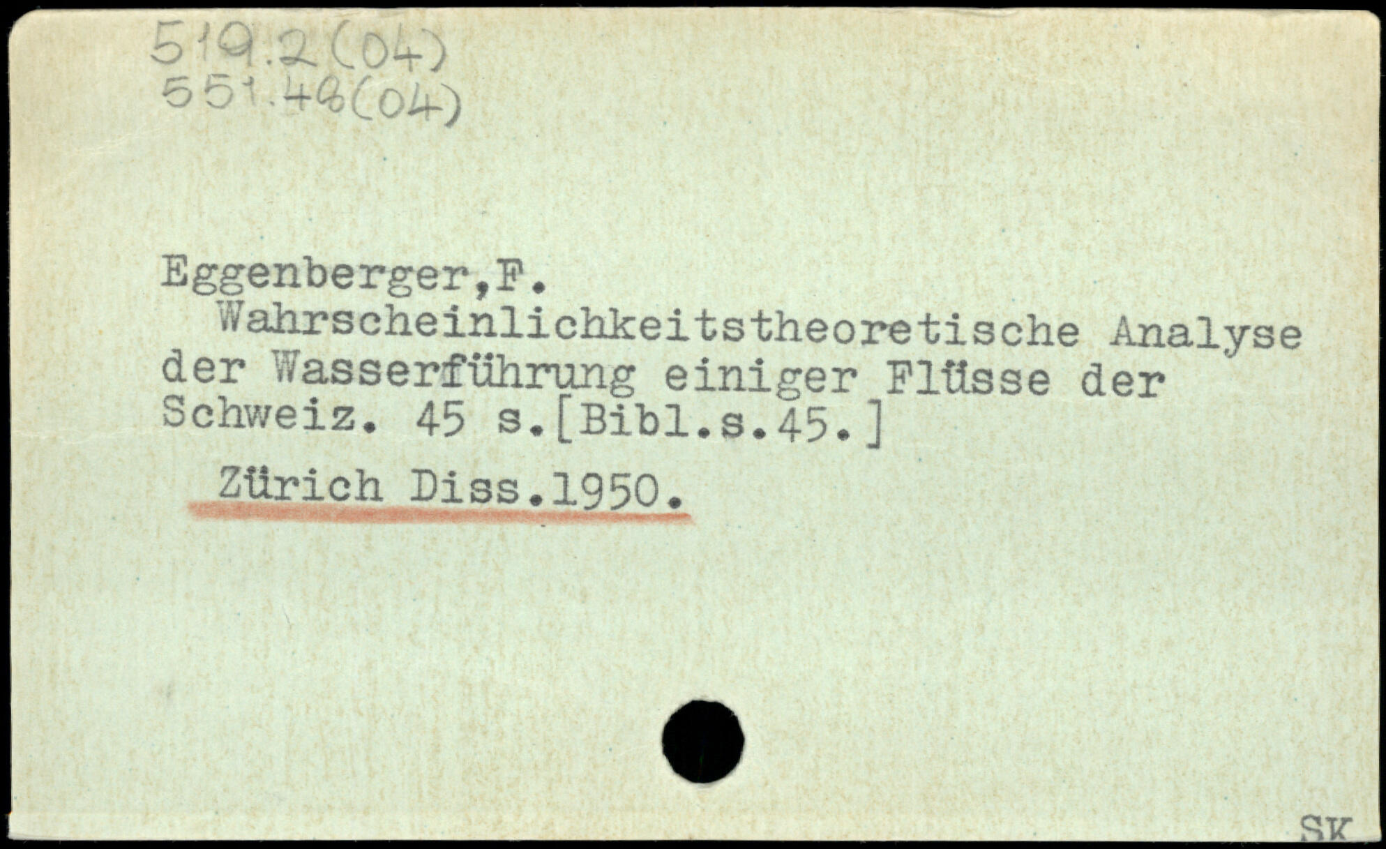 Wahrscheinlichkeitstheoretische Analyse der Wasserführung einiger Flüsse der Schweiz.