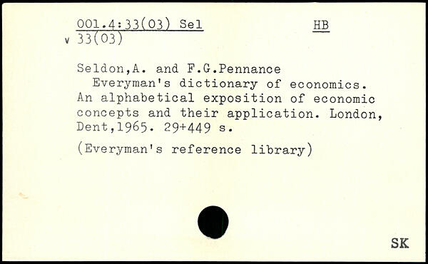 Everyman's dictionary of economics. An alphabetical exposition of economic concepts and their application.