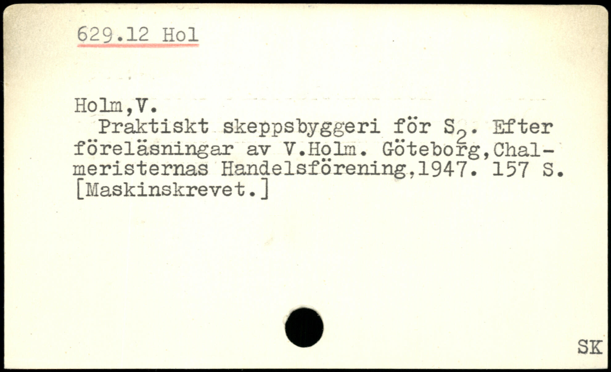 Praktiskt skeppsbyggeri för S£. Efter föreläsningar av V.Holm. Göteborg,Chal-meristernas Handelsförening.1947.