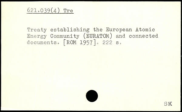 Treaty establishing the European Atomic Energy Community (EURATOM) and connected documents. [ROM 1957].
