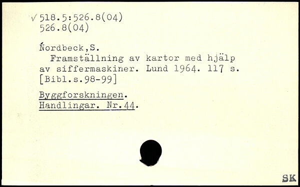Nord. "beck, S. Framställning av kartor med hjälp av siffermaskiner. Lund 1964.
