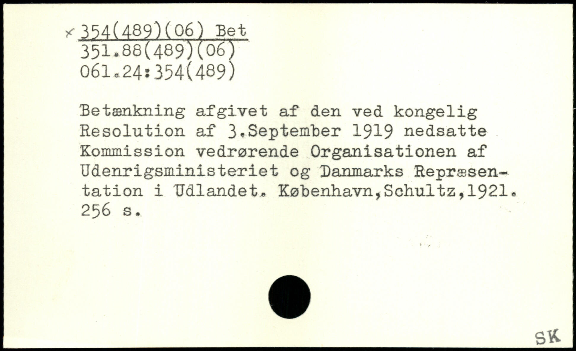 Betænkning afgivet af den ved kongelig Resolution af 3-September 1919 nedsatte Kommission vedrørende Organisationen af Udenrigsministeriet og Danmarks Repræsentation i Udlandet.