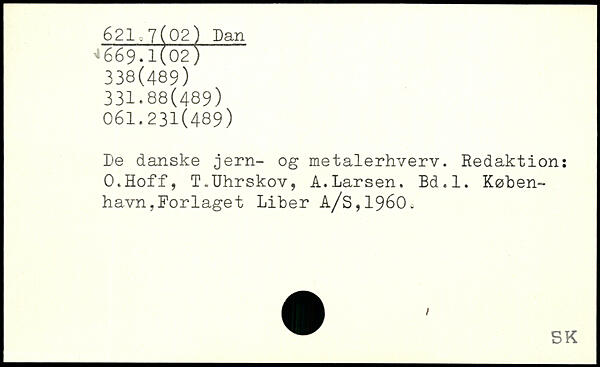 I)e danske jern- og metalerhverv. Redaktion: 0.Hoff, T.Uhrskov, A.Larsen. Bd.l.