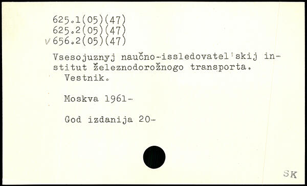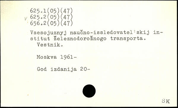 Ysesojuznyj naucno-issledovatel■skij institut zeleznodoroznogo transporta-, Yestniko