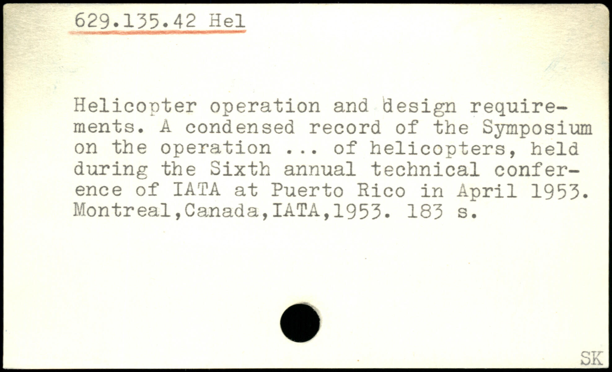 Helicopter operation and design requirements. A condensed record of the Symposium on the operation ... of helicopters, held during the Sixth annual technical conference of IATA at Puerto Rico in April 1953.