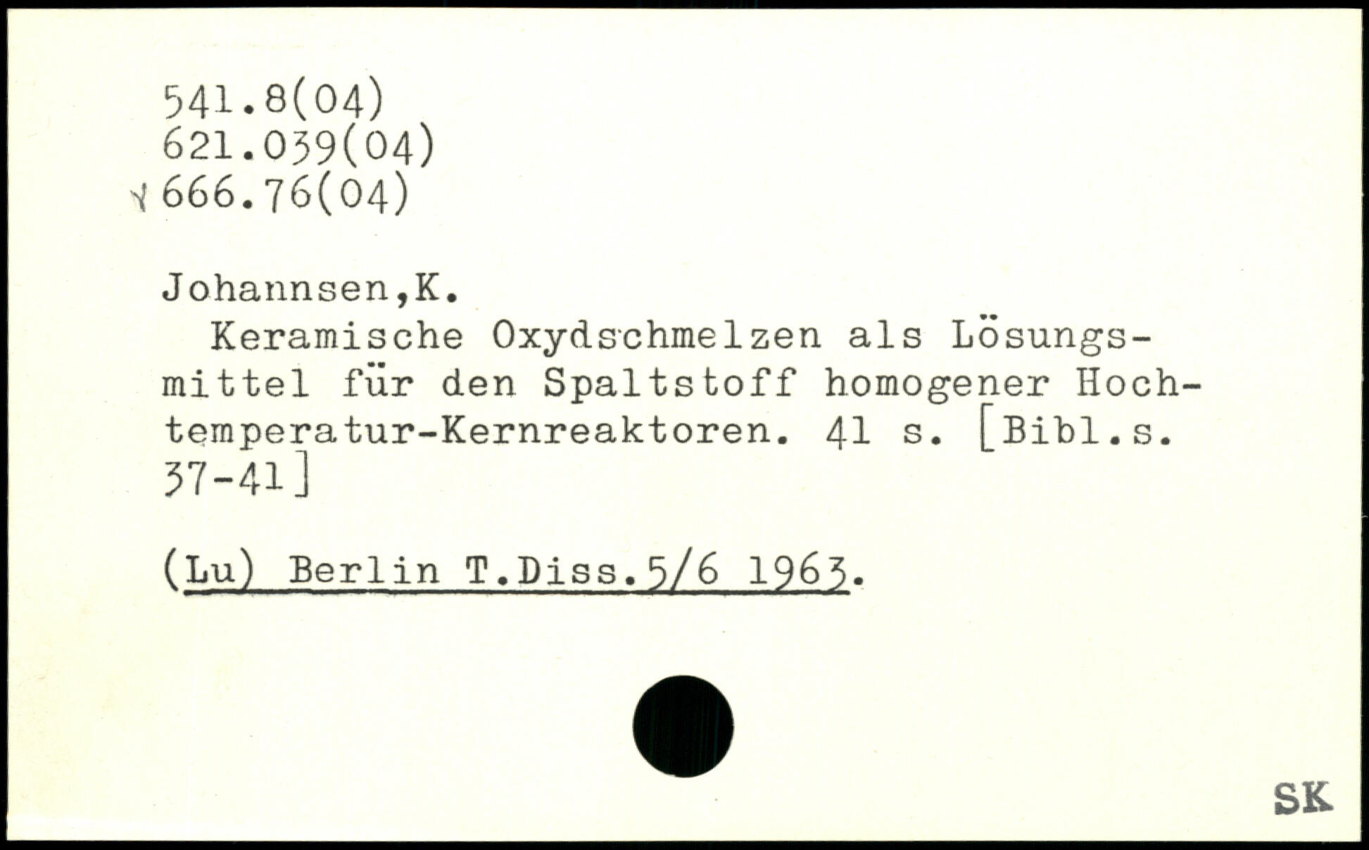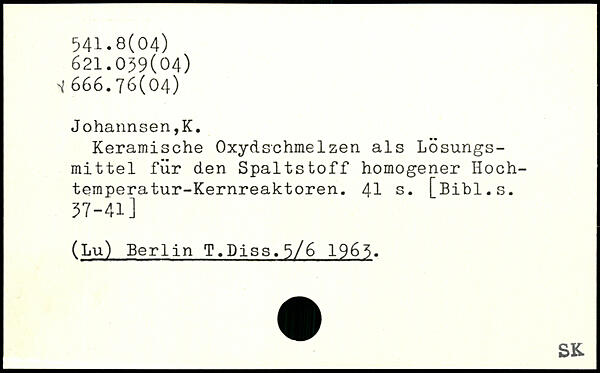 Keramische Oxydschmelzen als Lösungsmittel für den Spaltstoff homogener Hochtemperatur-Kernreaktoren.