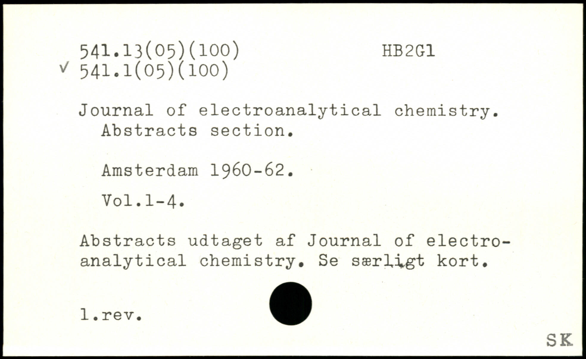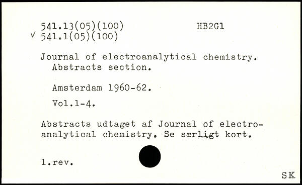 Journal of electroanalytical chemistry. Abstracts section, Amsterdam 1960-62.