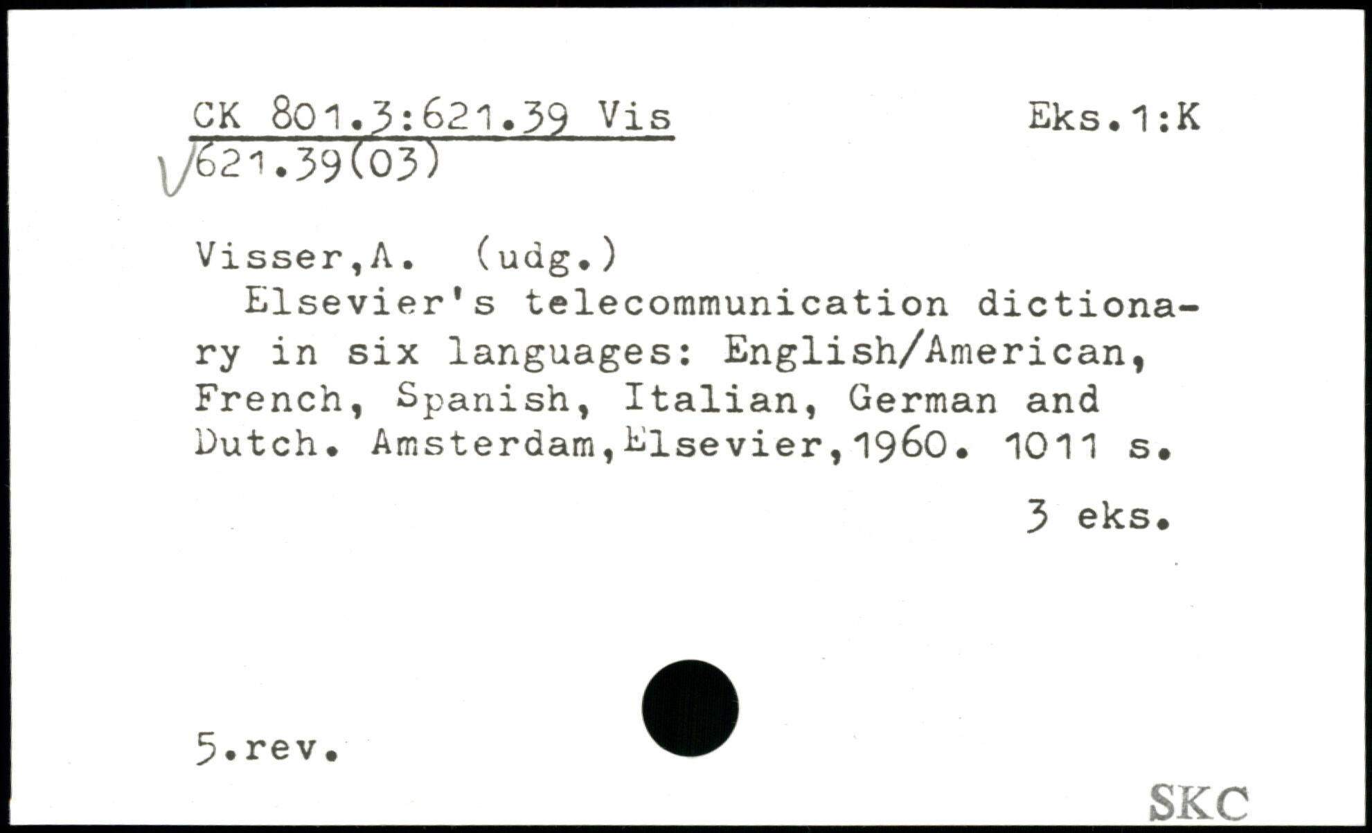 Elsevier's telecommunication dictionary in six languages:
