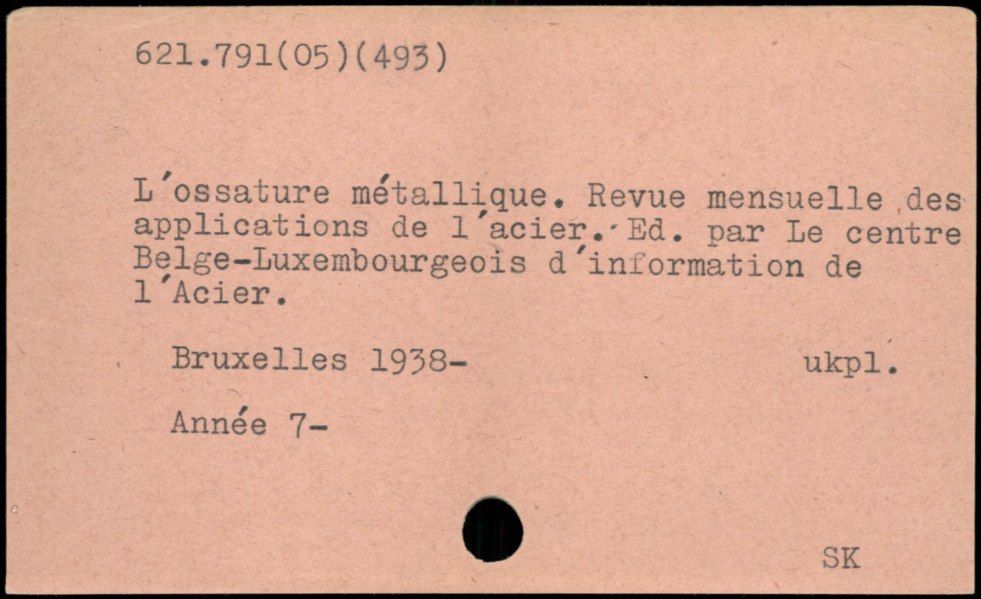 L ossature métallique. Revue mensuelle .des applications de 1 acier.'Ed. par Le centre Belge-Luxembourgeois d'information de 1 Acier.