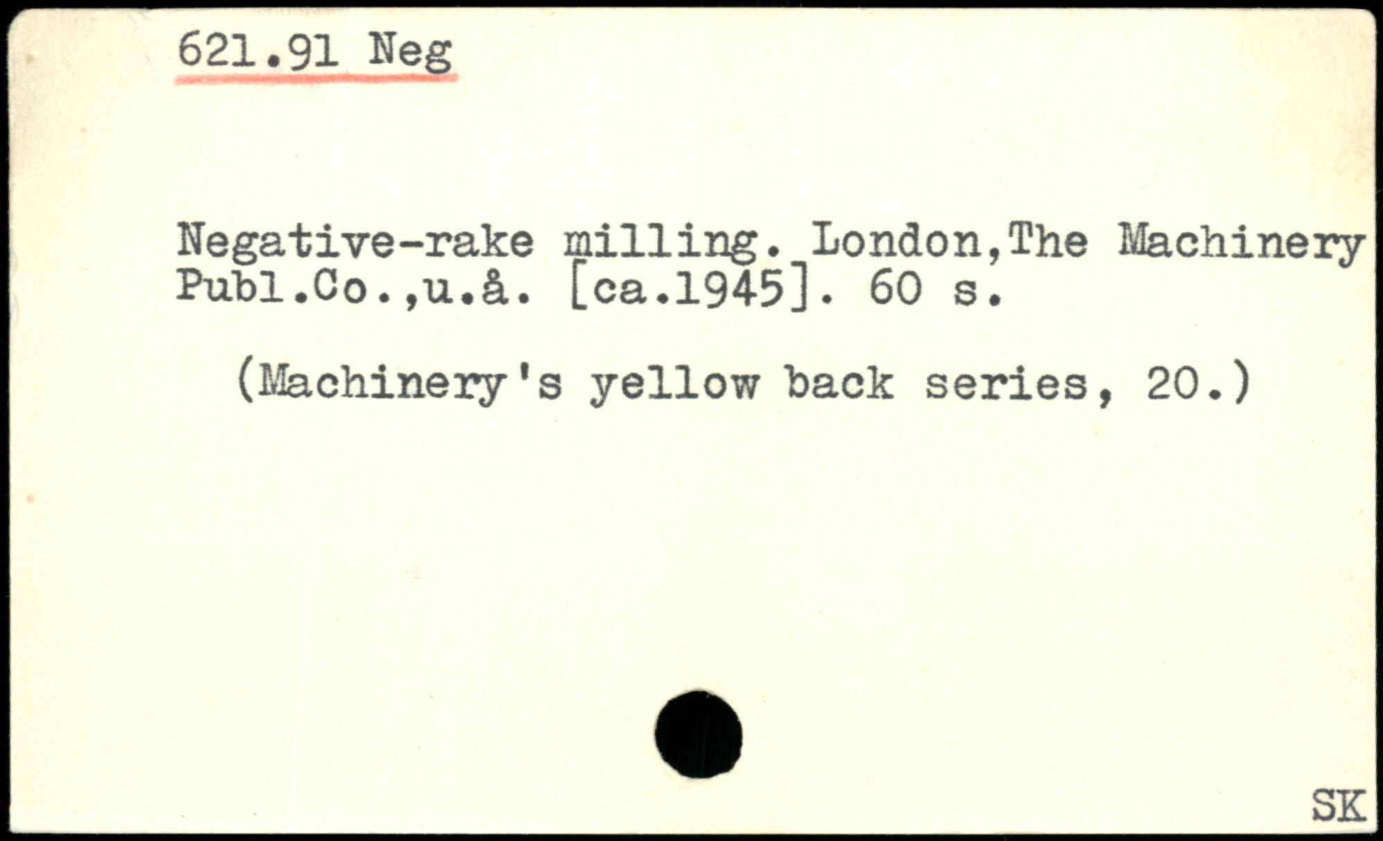 Negative-rake m1111ng. London, The Machinery Publ.Co.,u.å. [ca.1945].