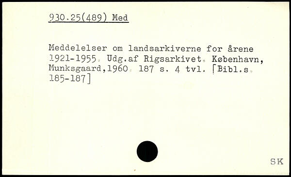 Meddelelser om landsarkiverne for årene 1921-1955- Udg.af