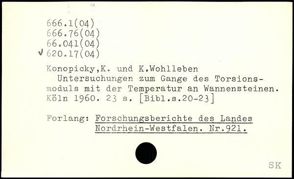 Untersuchungen zum Gange des Torsionsmoduls mit der Temperatur an Wannensteinen.