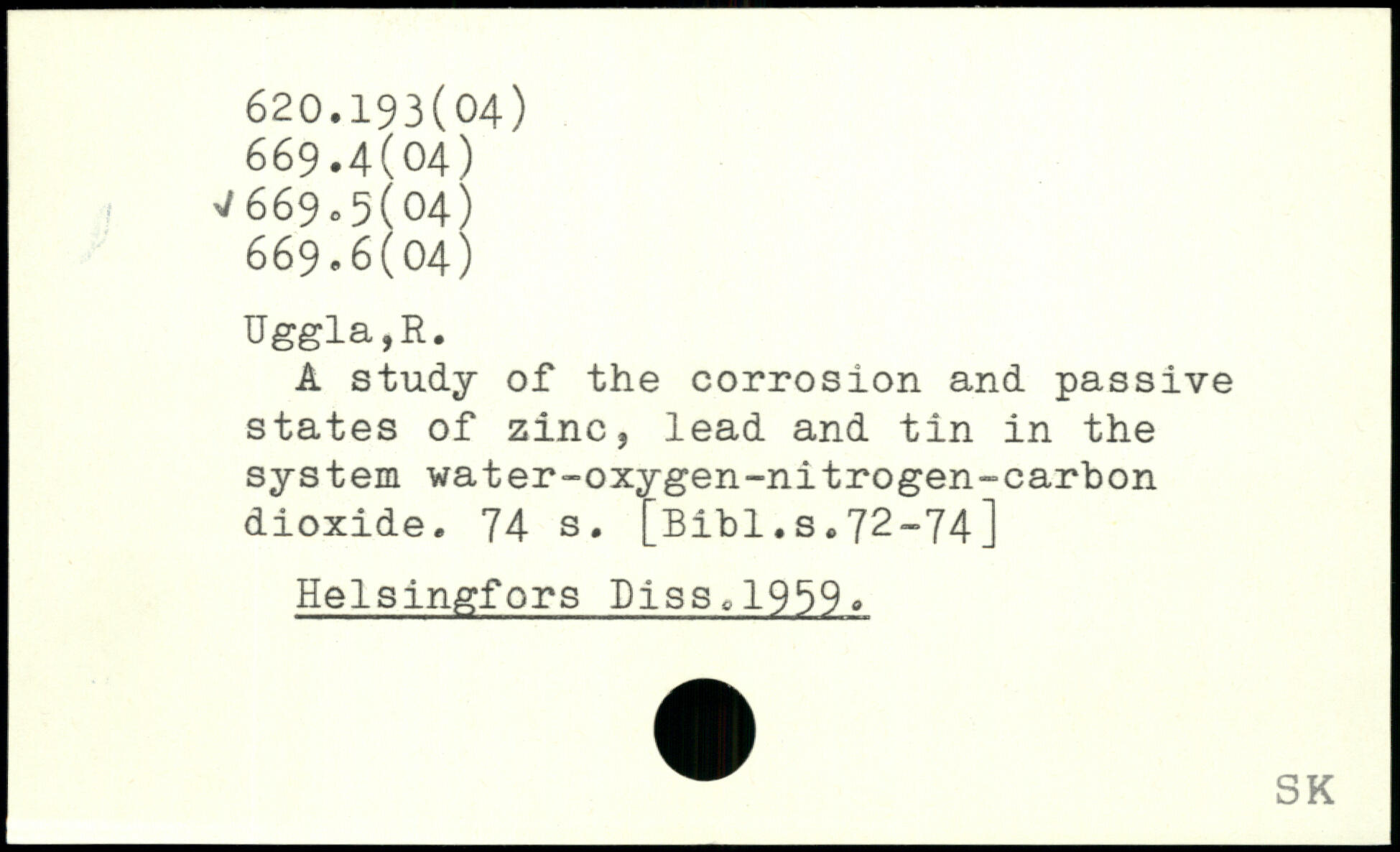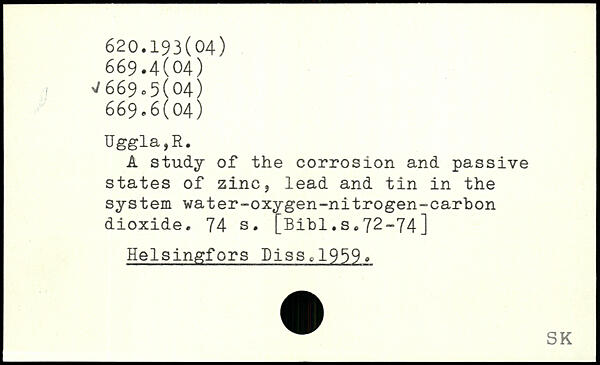 A study of the corrosion and passive states of zinc, lead and tin in the system water-oxygen-nitrogen-carbon dioxide.