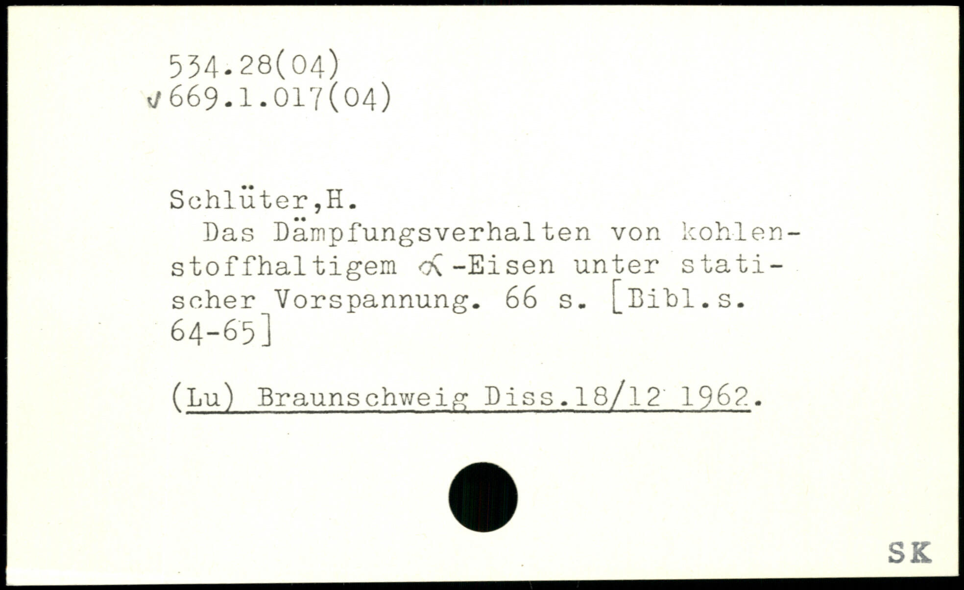 Das Dämpfungsverhalten von kohlenstoffhaltigem <a-Eisen unter statischer Vorspannung.
