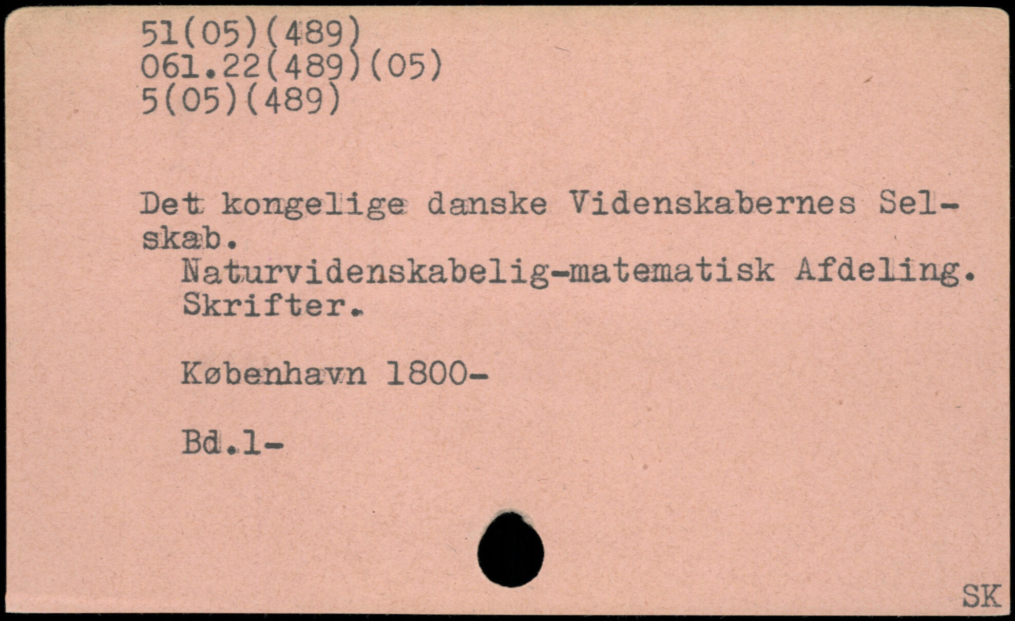 Det; kongelige danske Videnskabernes Selskab, Katurvidenskabelig-matematisk Afdeling. Skrifter.