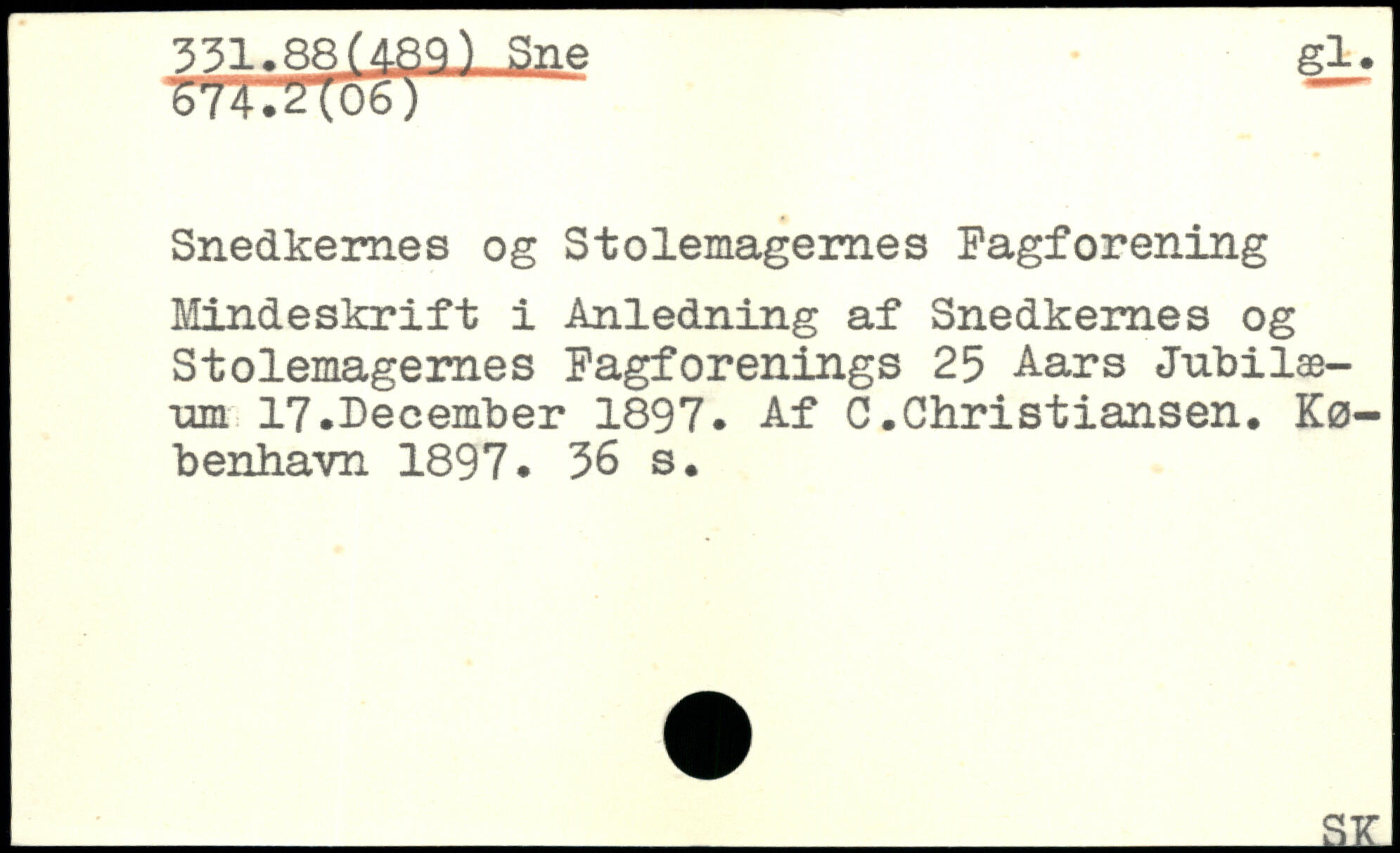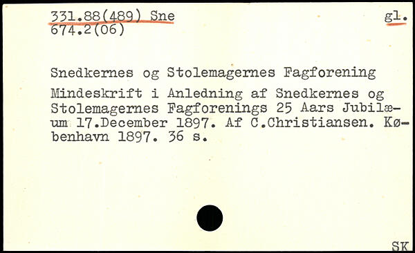 Snedkernes og Stolemagernes Fagforening Mindeskrift i Anledning af Snedkernes og Stolemagernes Fagforenings 25 Aars Jubilæum 17.December 1897. Af C.Christiansen