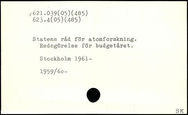 Statens råd för atomforskning, Redogörelse för budgetåret o