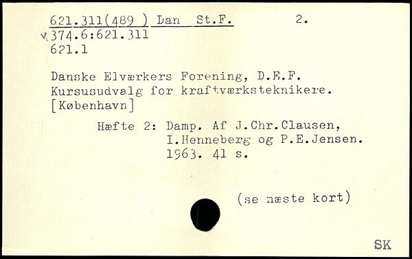 Danske Elværkers Forening, D.E.F. Kursusudvalg’ for kraftværks teknikere.
