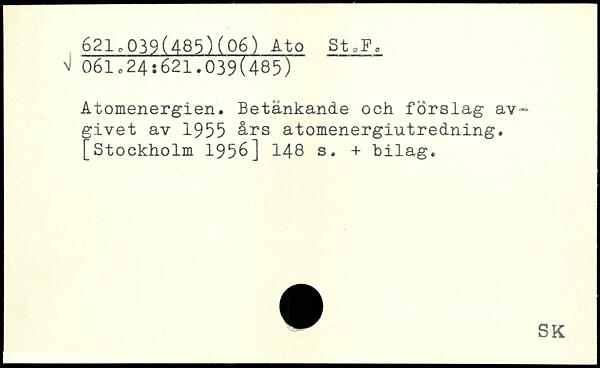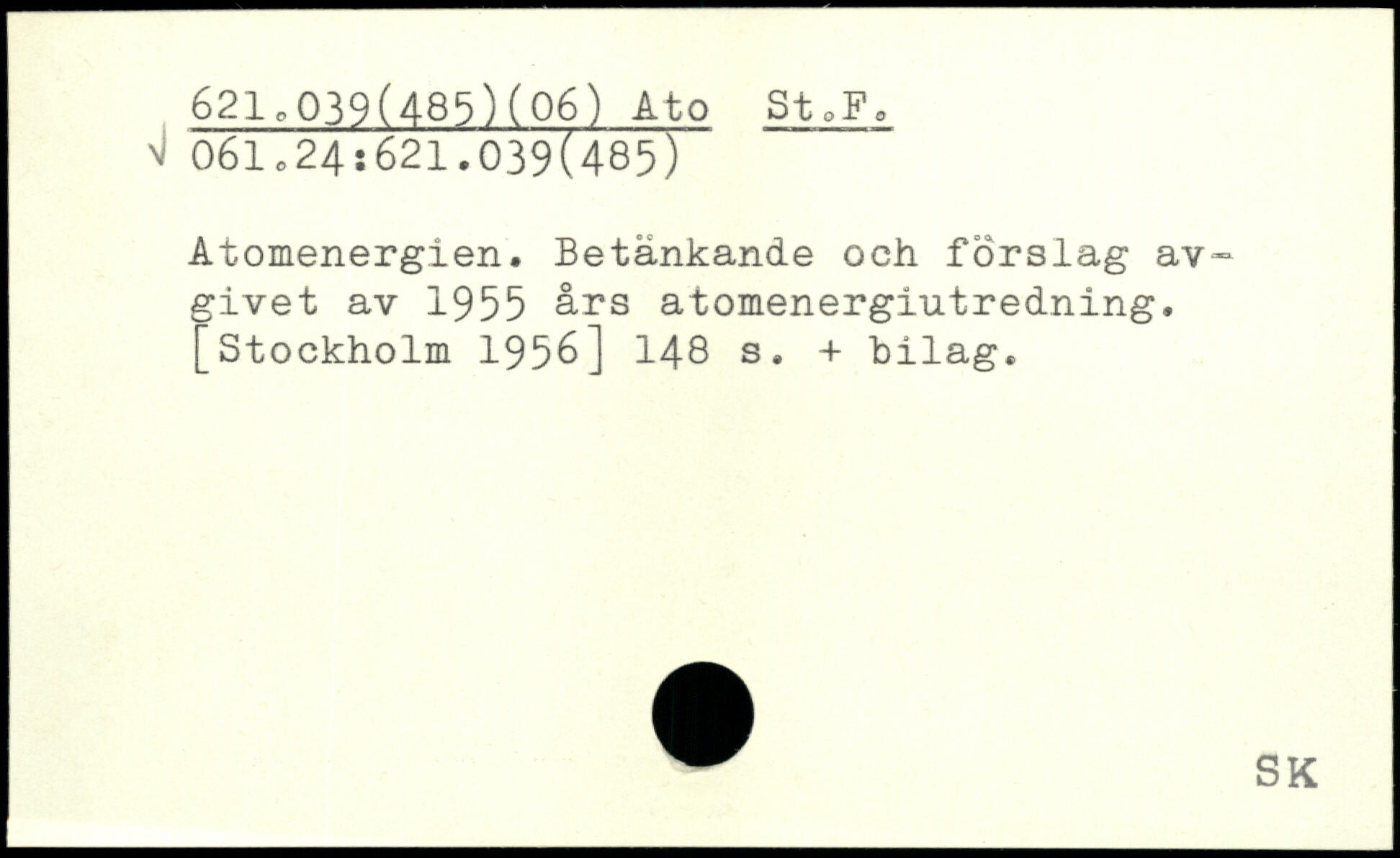 Atomenergien. Betänkande och förslag av~ givet av 1955 års atomenergiutredning.